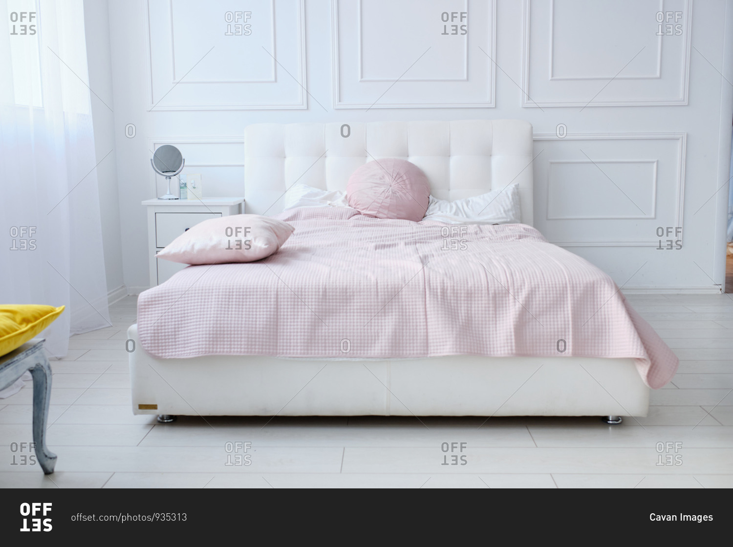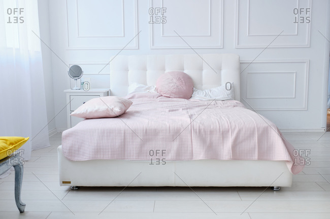 A large double bed in a bright room