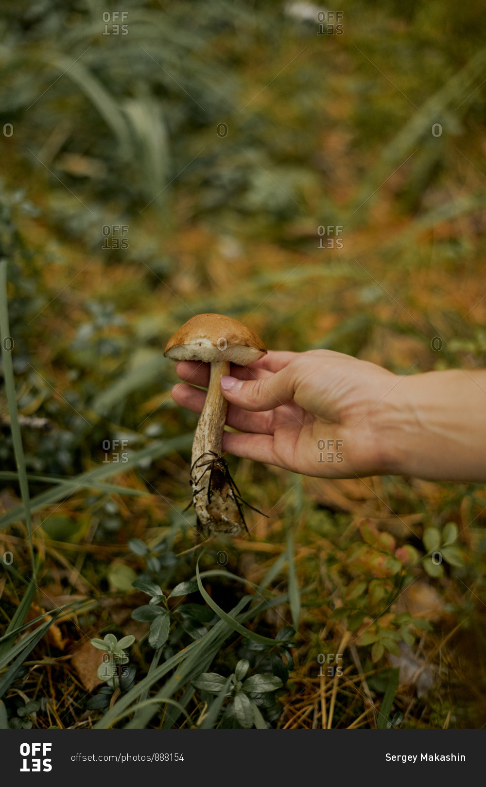 A woman holds a mushroom in her hand