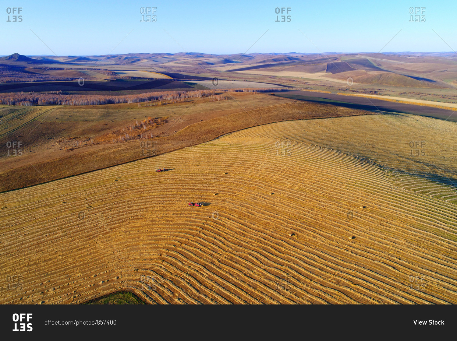 Aerial golden fields of autumn