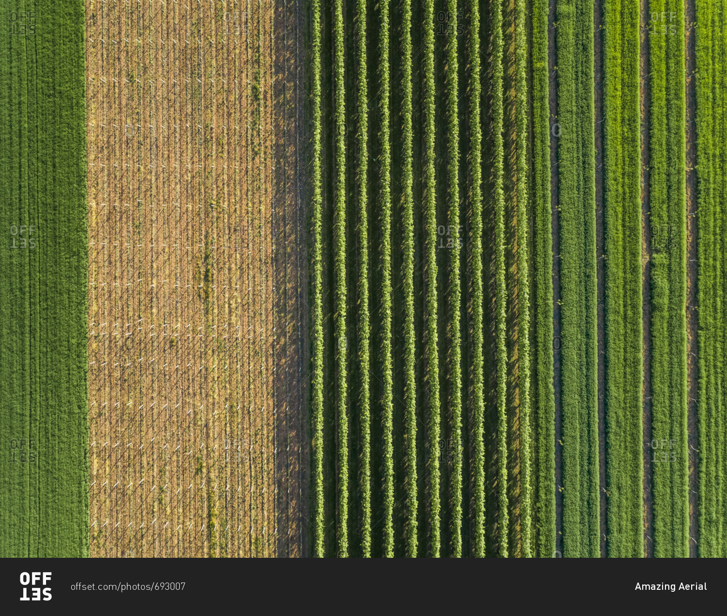 Aerial view of agricultural fields at beautiful Karditsa region in Greece