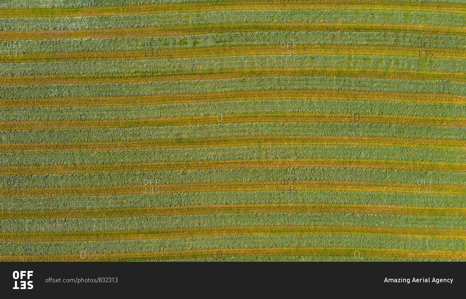 Aerial view of an agricultural field after harvest in late autumn in Naperville, IL in the United States.