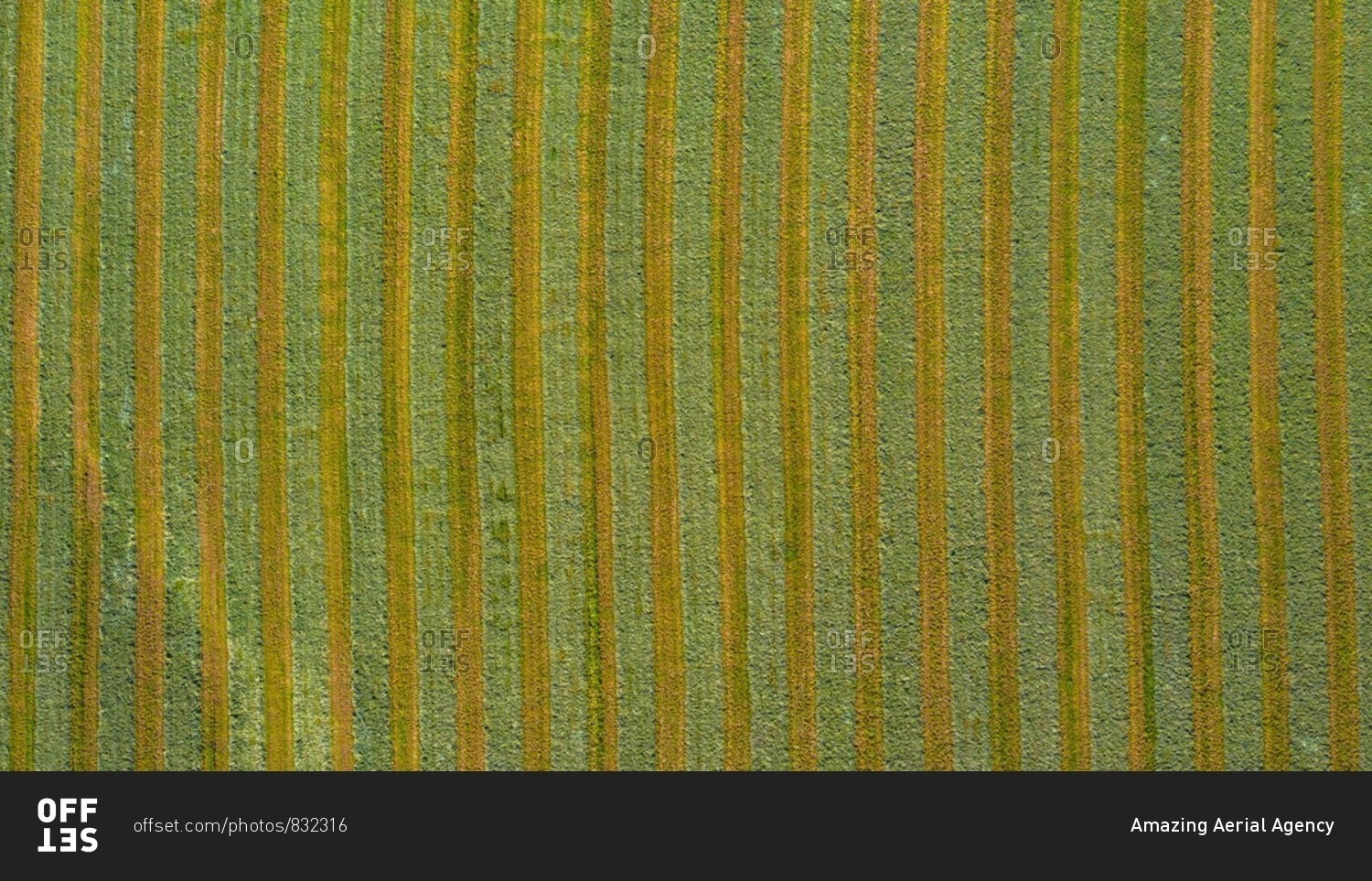 Aerial view of an agricultural field after harvest in late autumn in Naperville, IL in the United States.