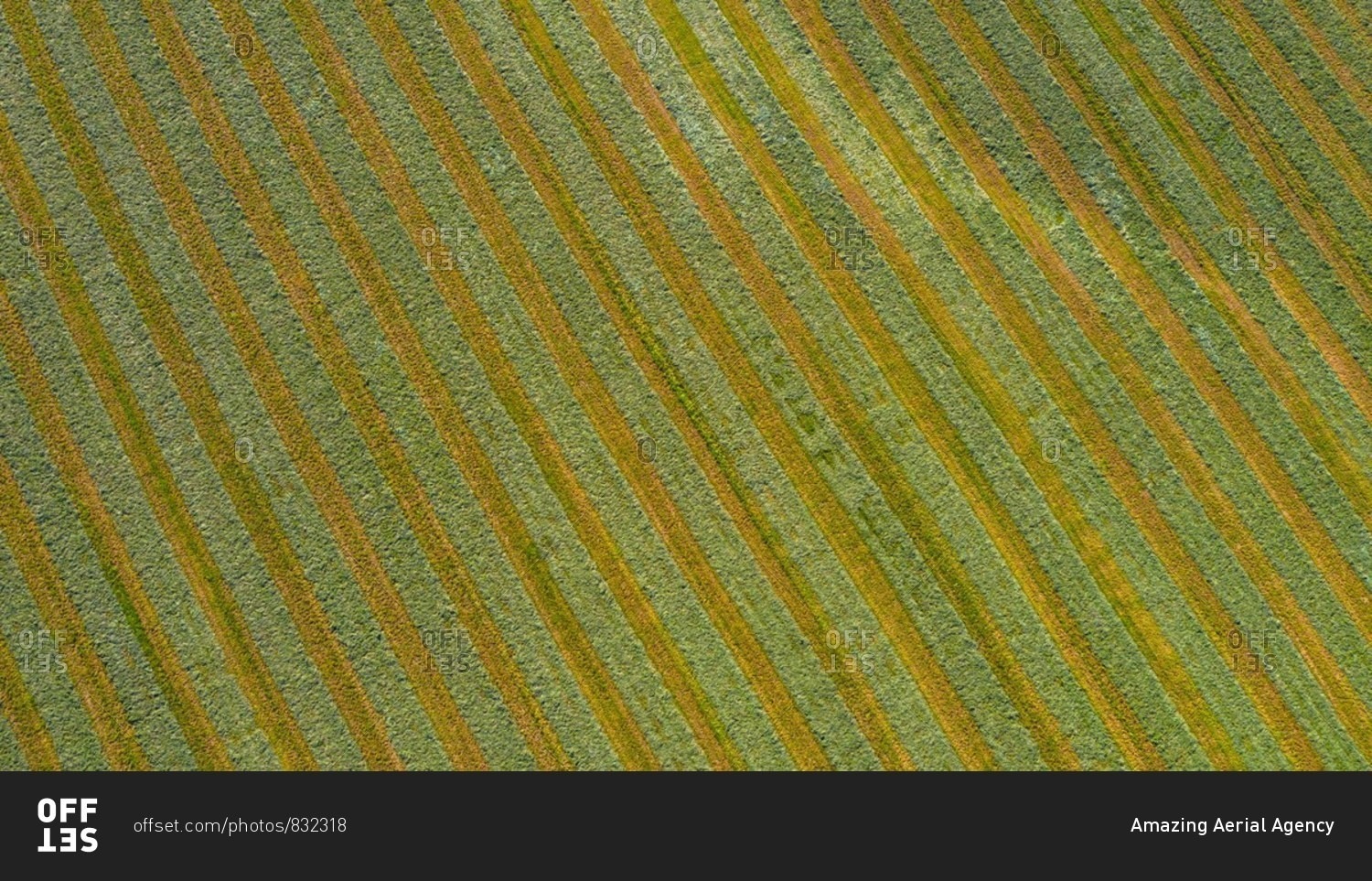Aerial view of an agricultural field after harvest in late autumn in Naperville, IL in the United States.