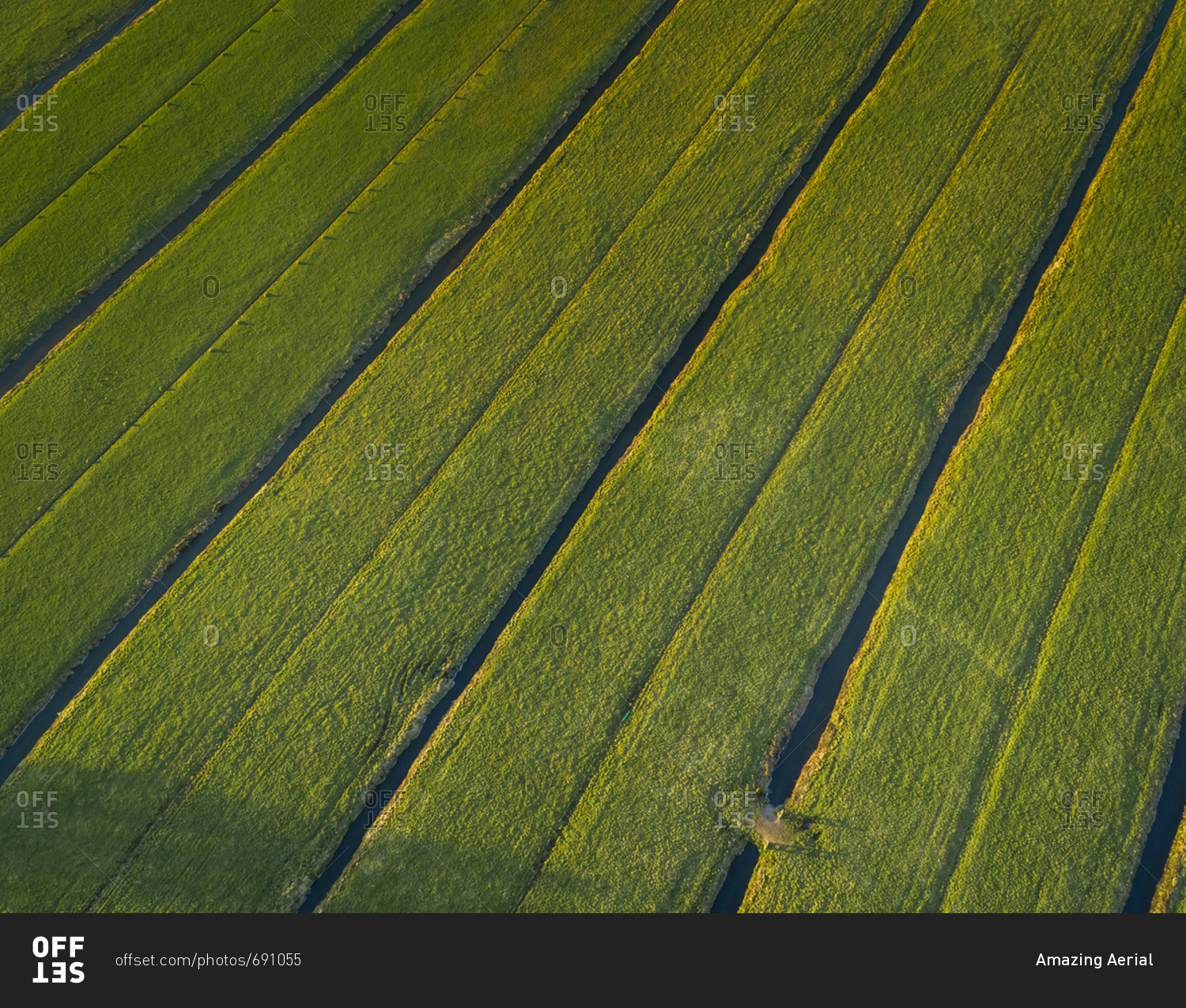 Aerial view of farming fields with canal in the countryside of Vinkeveen, the Netherlands.