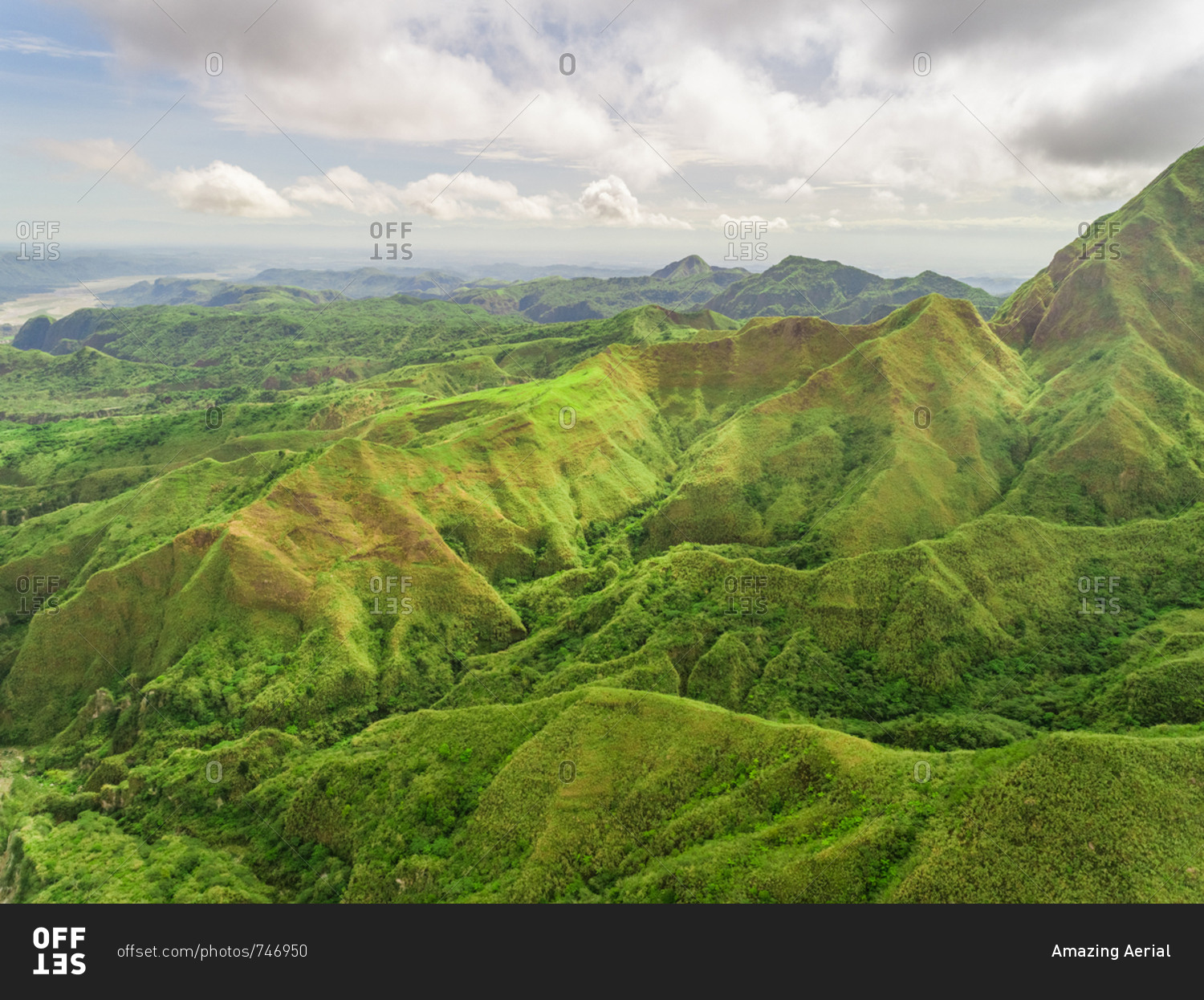 Aerial view of green hills in valley, Porac, Philippines.