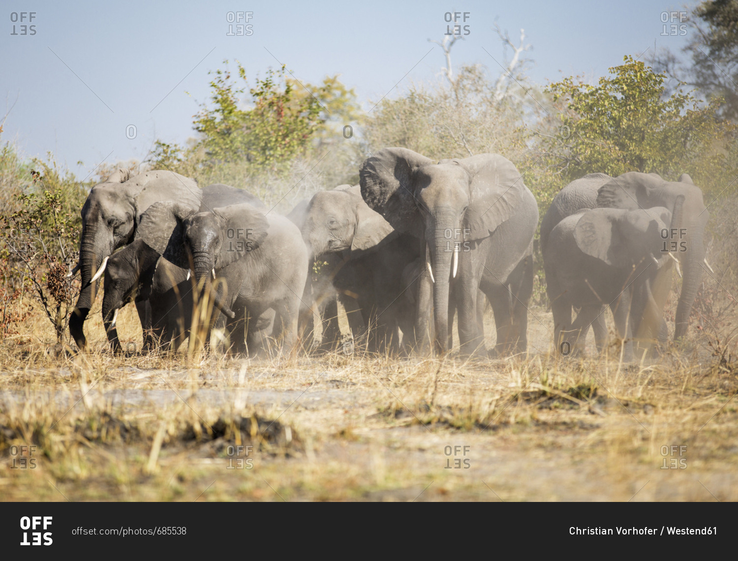 Africa- Namibia- Caprivi- African elephants whirling dust