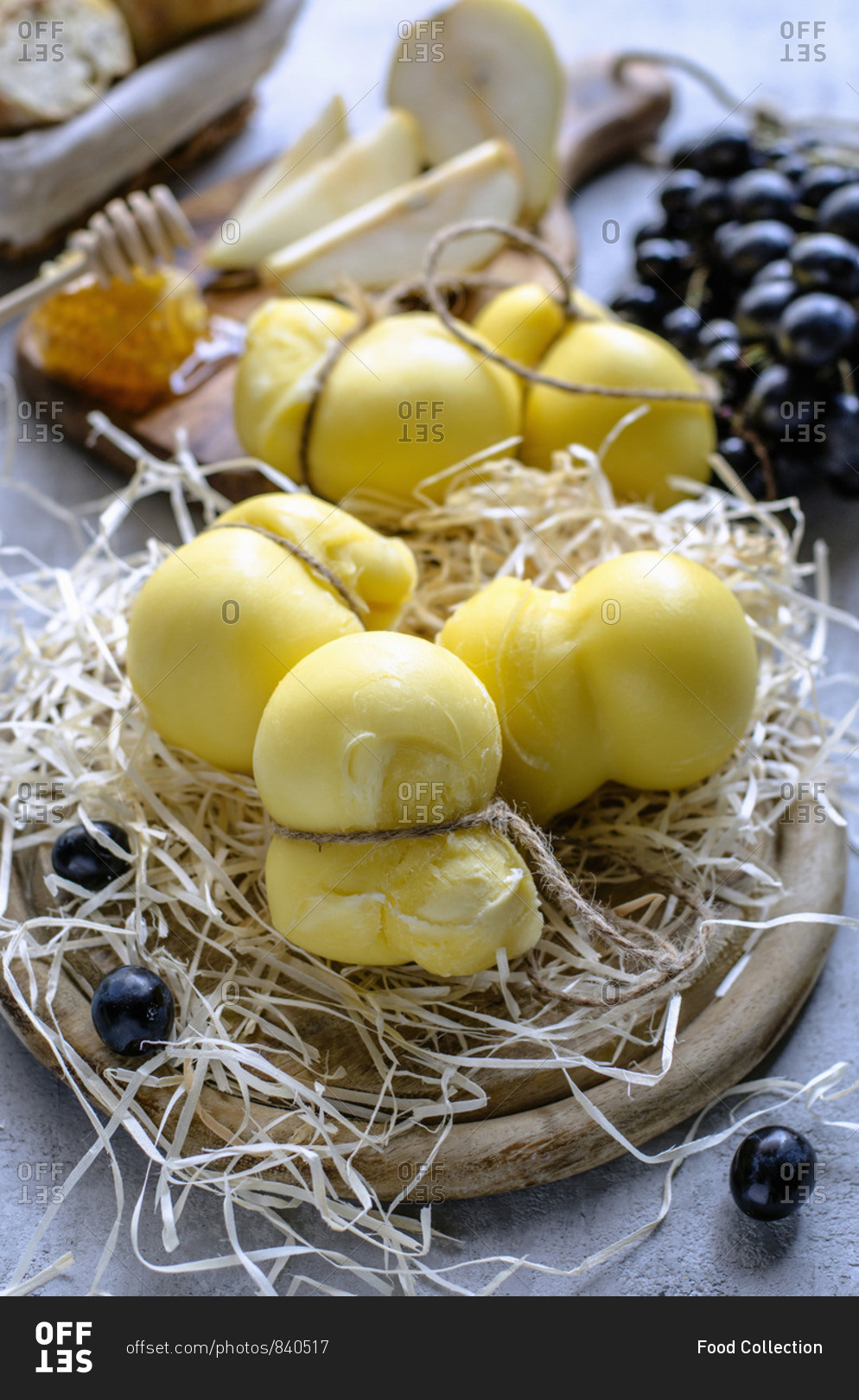 Aged mozzarella cheese and different appetizers for wine