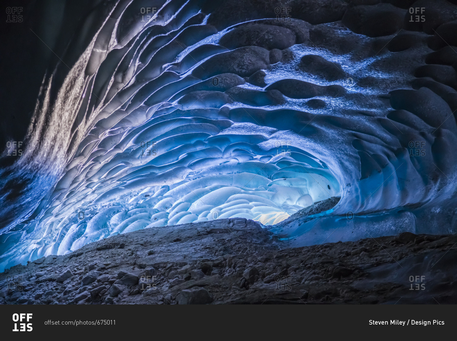 Alaska, United States of America - March 1, 2015: Light Shines Into A Cave Within Canwell Glacier In The Alaska Range, Hdr Composite; Alaska, United States Of America