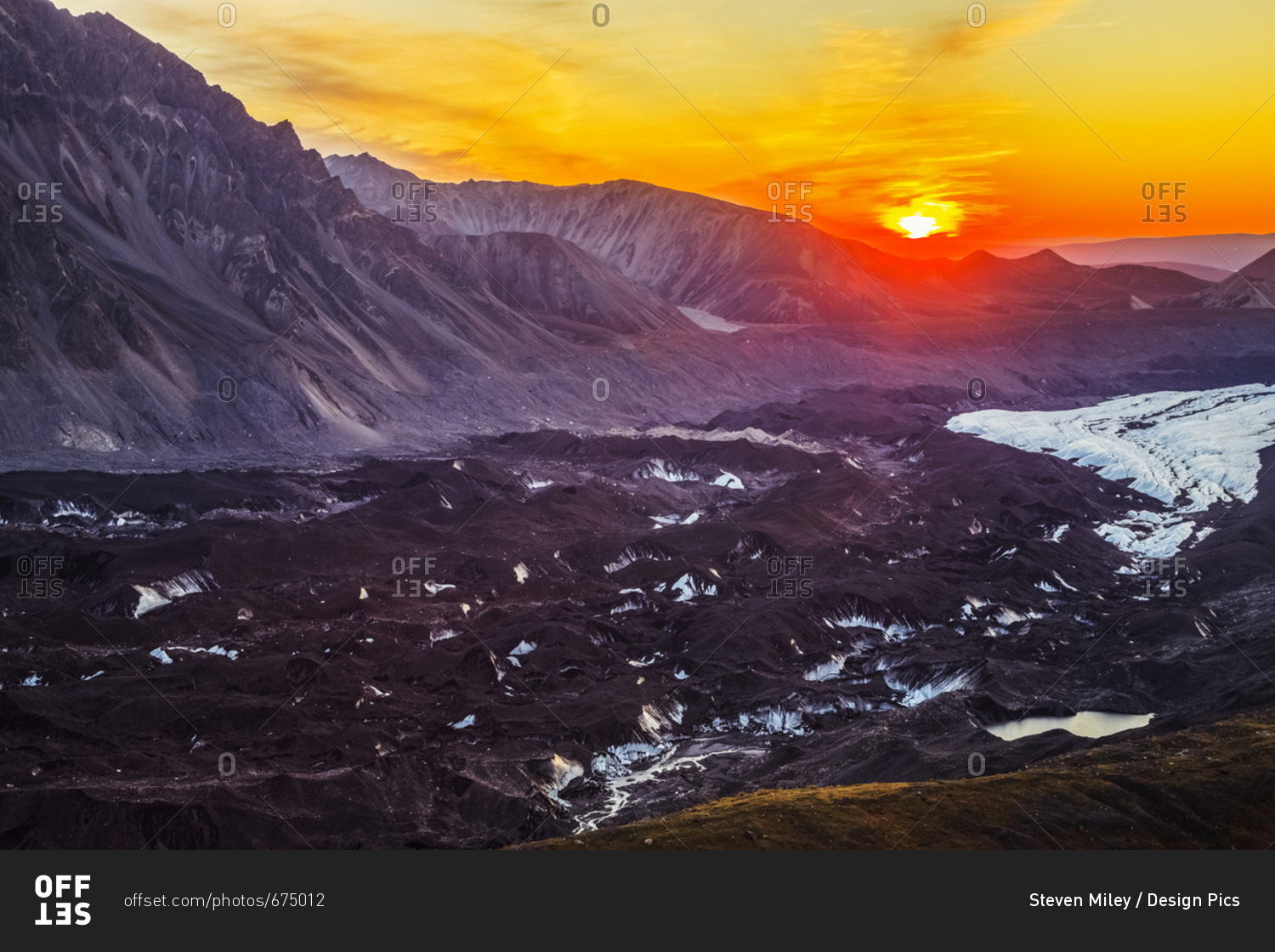 Alaska, United States of America - September 3, 2016: The Sun Sets Over The Muldrow Glacier In Denali National Park In Early Autumn; Alaska, United States Of America