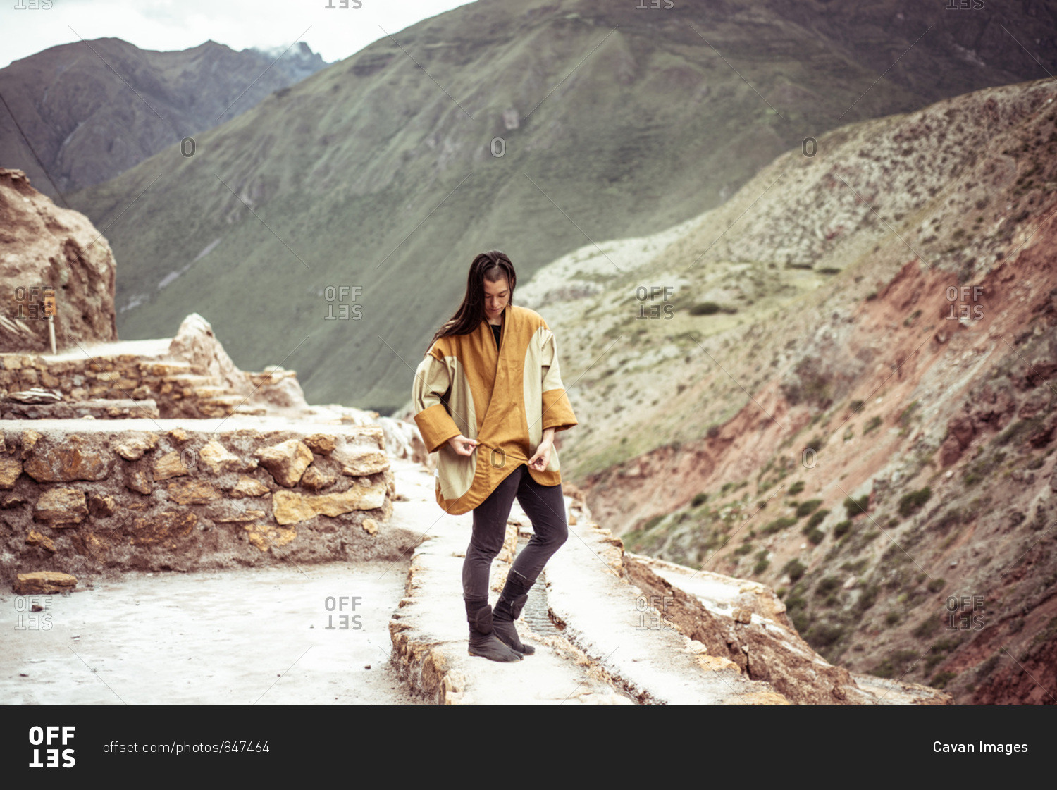 Androgynous mixed race dancer in salt farm on mountain side