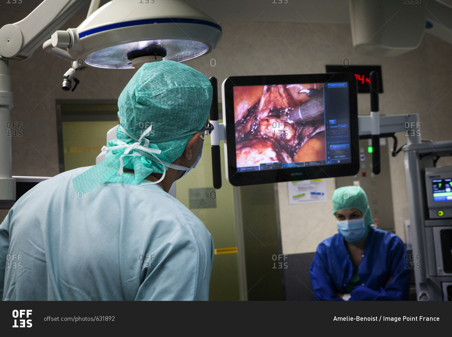 April 7, 2016: Reportage in an operating theatre during a hysterectomy using the da Vinci robot, in France