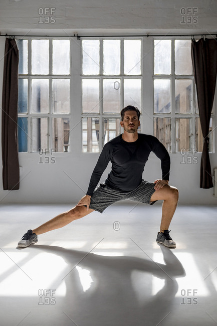 Athlete worming up in sunlit studio