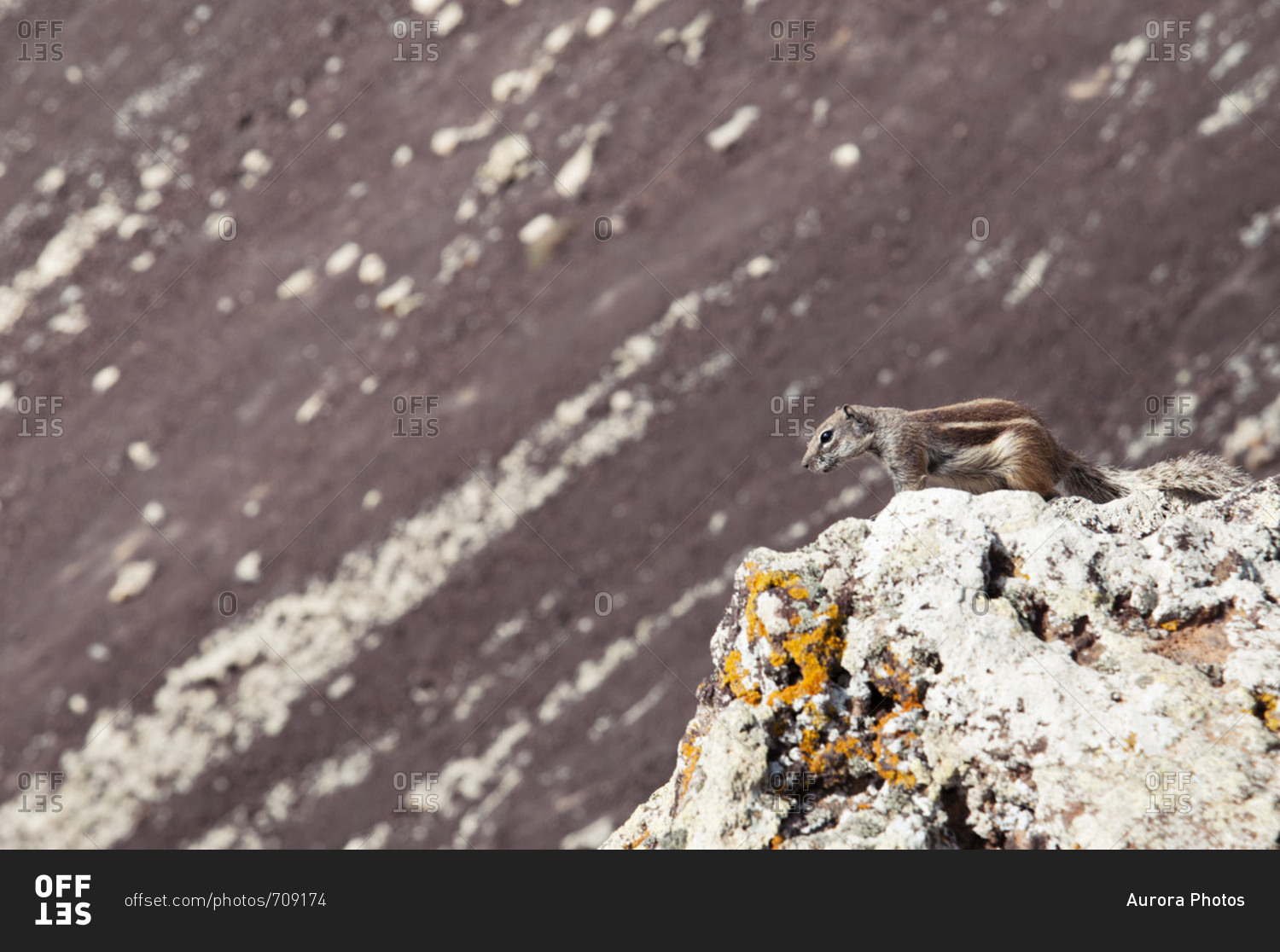 Barbary ground squirrel (Atlantoxerus getulus), crater of Calderon Hondo volcano, La Oliva, Fuerteventura, Canary Islands, Spain