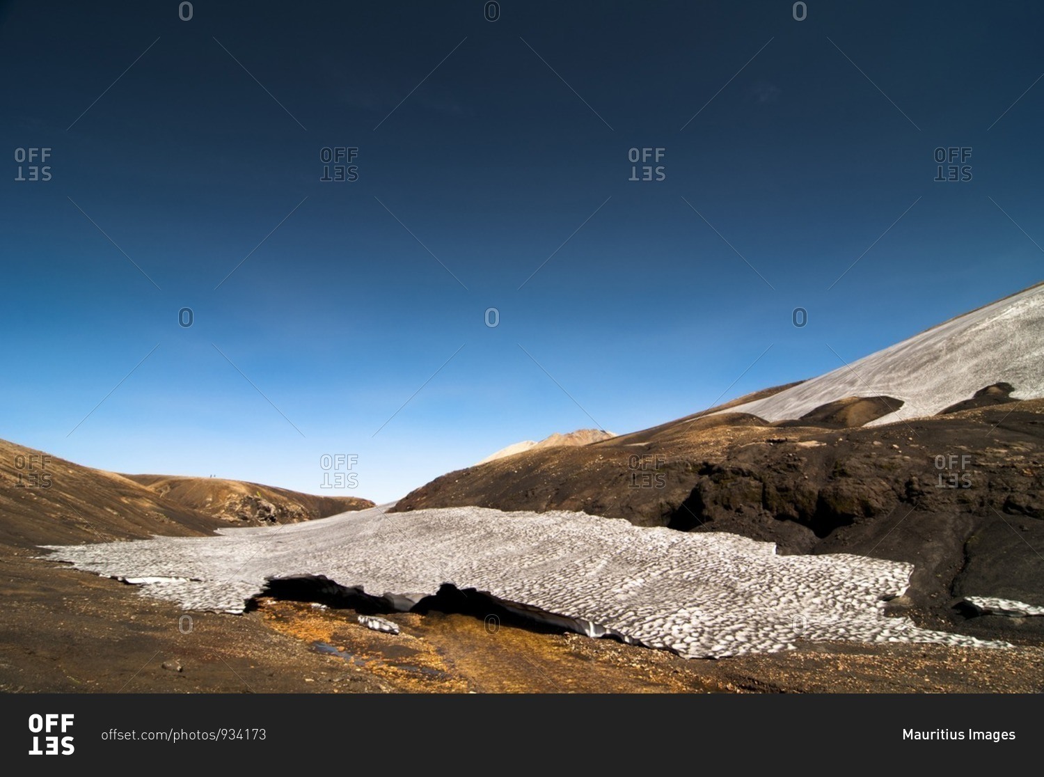 Barren volcanic landscape on the way from Skogar to Landmannalaugar, Iceland, Europe