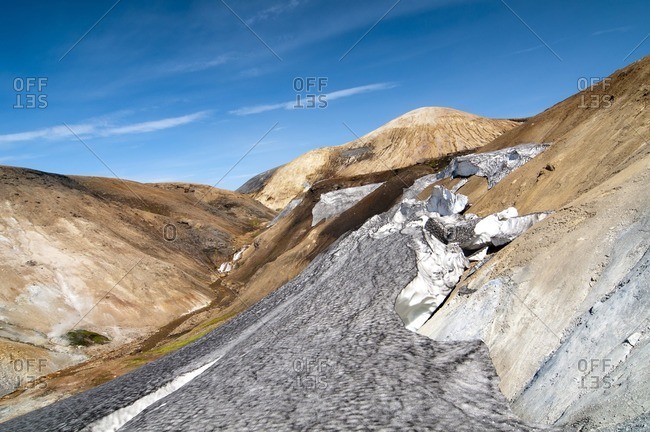 Barren volcanic landscape on the way from Skogar to Landmannalaugar, Iceland, Europe