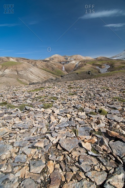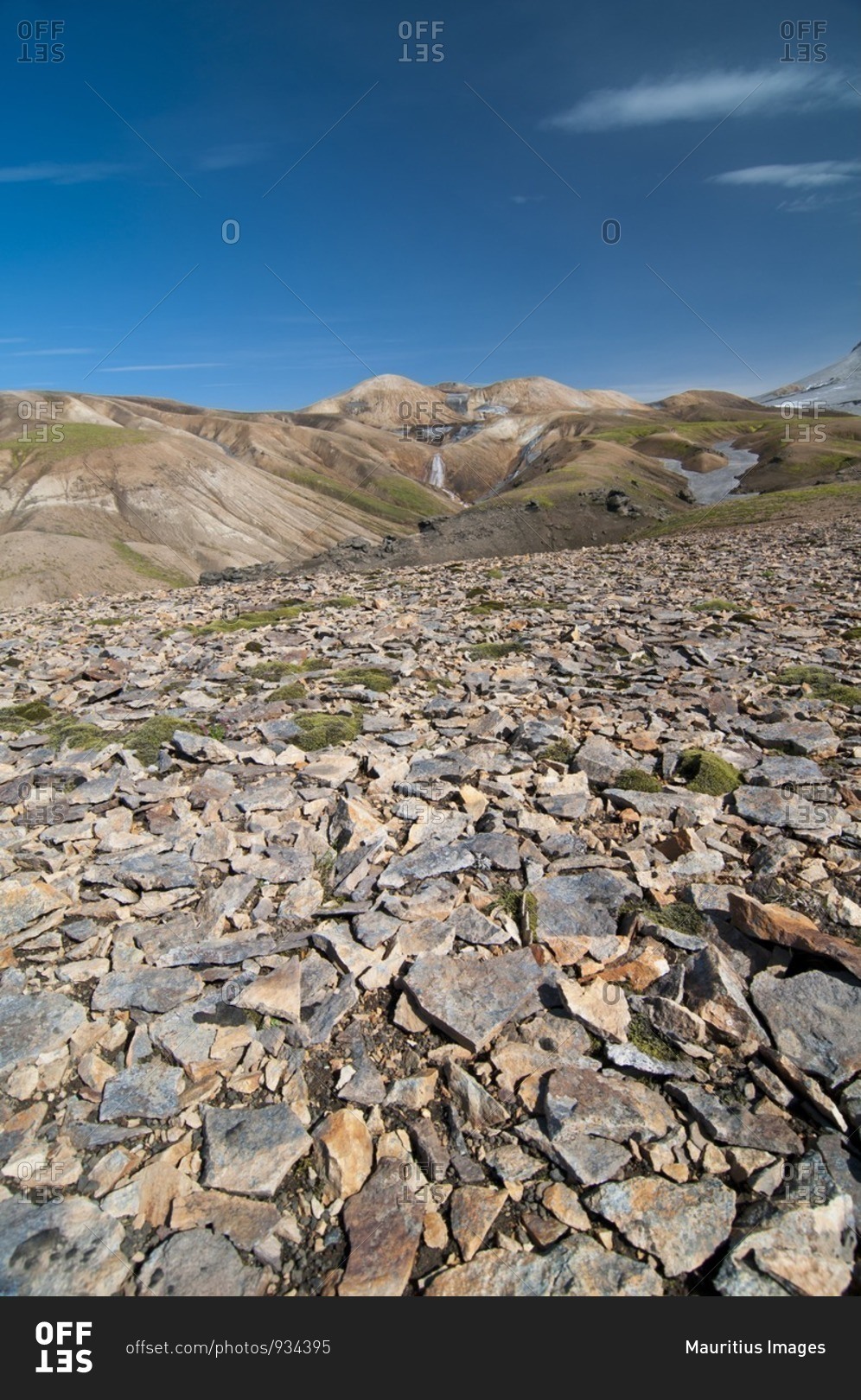 Barren volcanic landscape on the way from Skogar to Landmannalaugar, Iceland, Europe