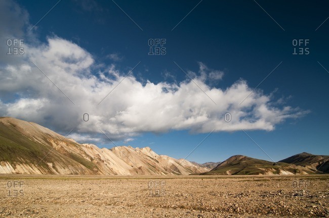 Barren volcanic landscape on the way from Skogar to Landmannalaugar, Iceland, Europe