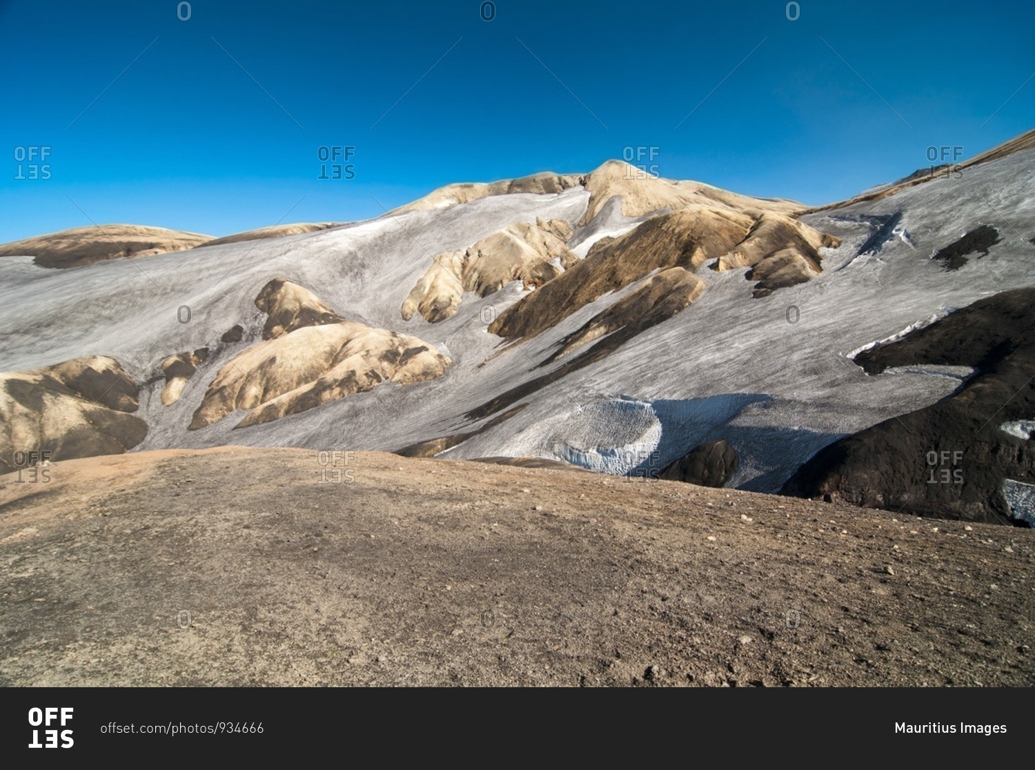 Barren volcanic landscape on the way from Skogar to Landmannalaugar, Iceland, Europe