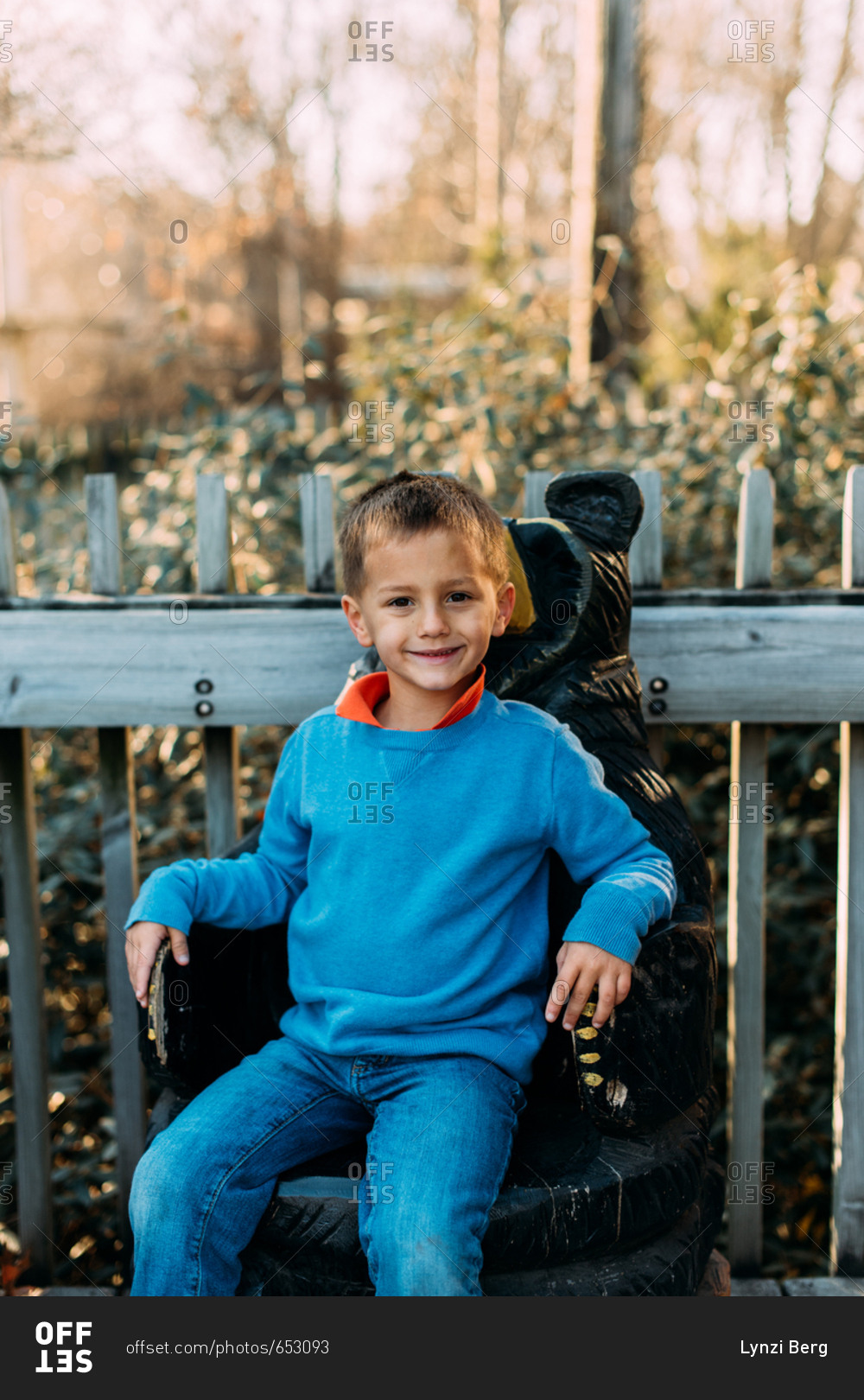 Boy sitting on bear seat at zoo