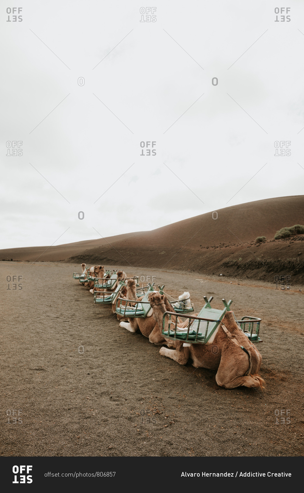 Camels resting near hill