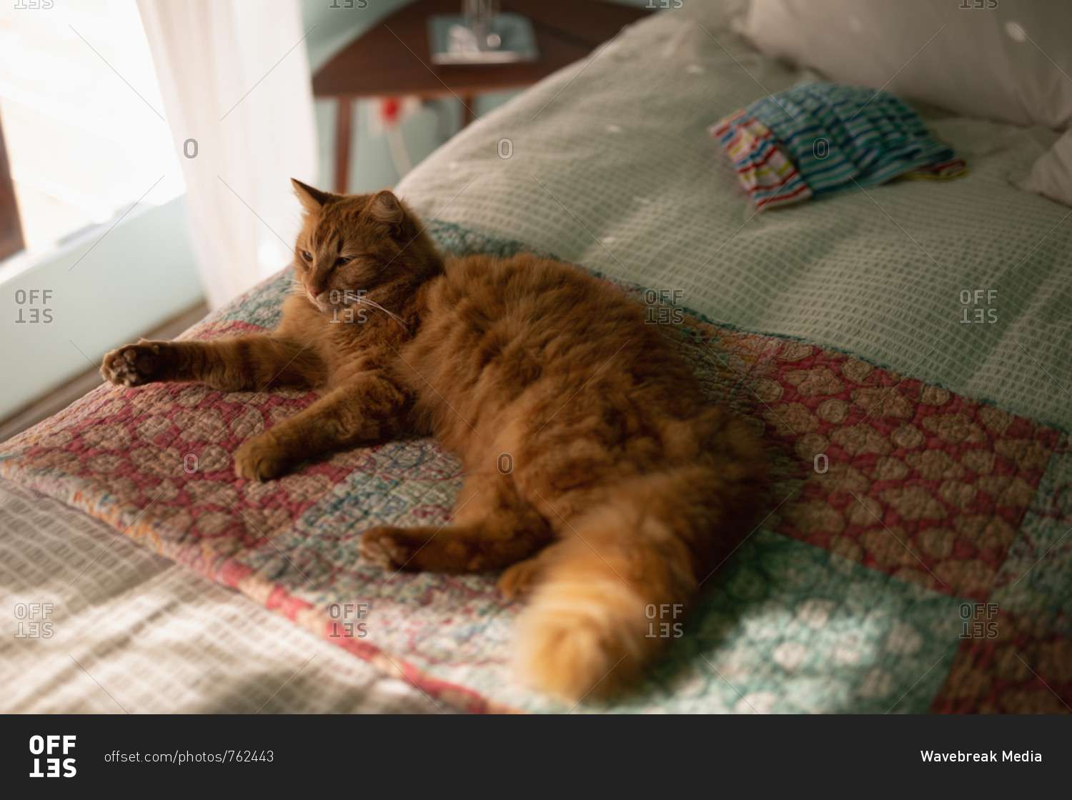 Cat lying in bed at home