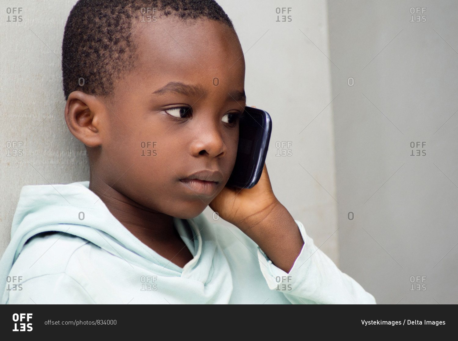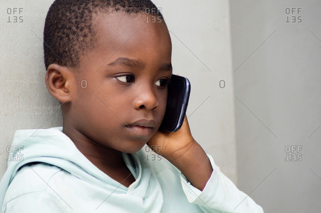 Child listening with great attention that his mother told him on the phone.