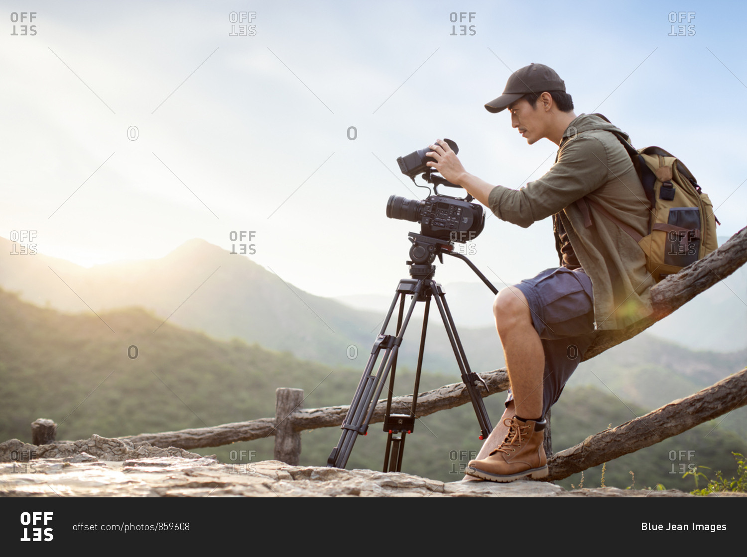 Chinese photographer taking photos outdoors