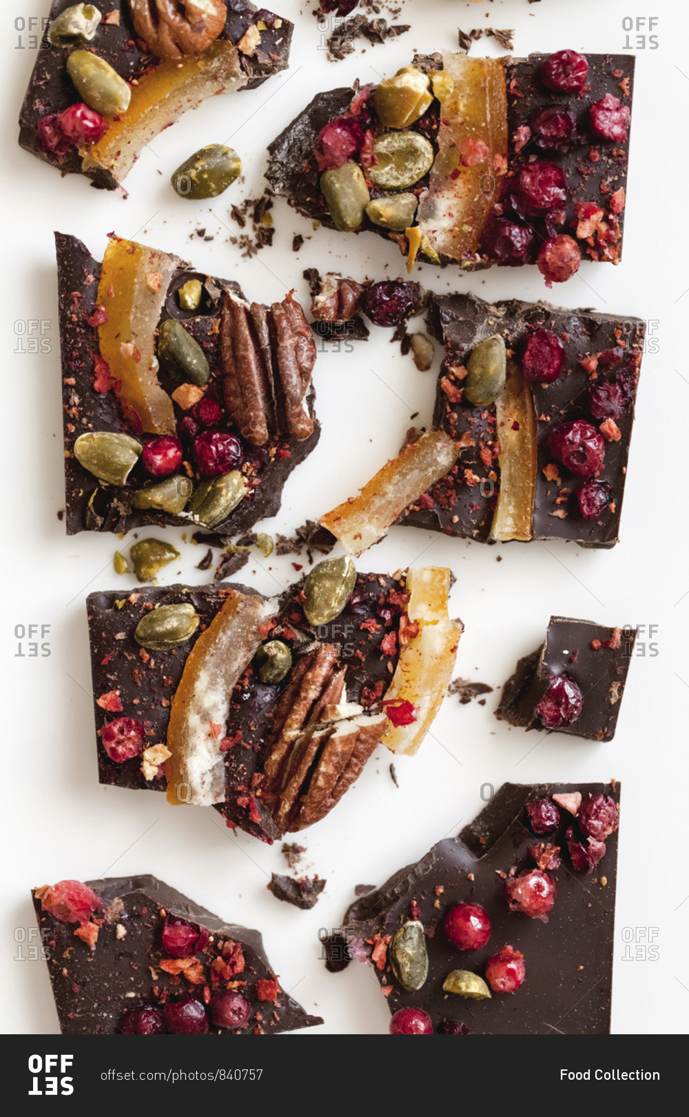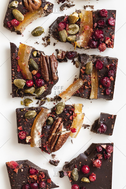 Chocolate with candied fruit and pistachios