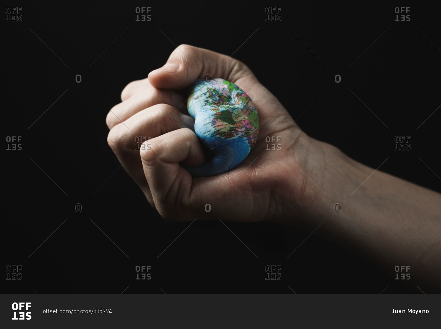 Closeup of a young caucasian man smashing a world globe in his hand