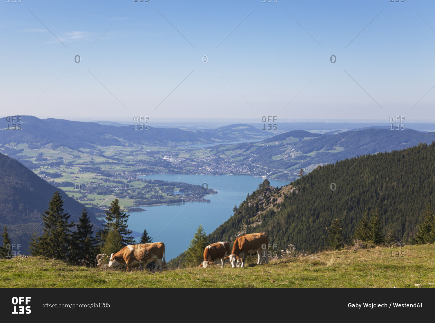 Cows grazing on Schafberg against blue sky