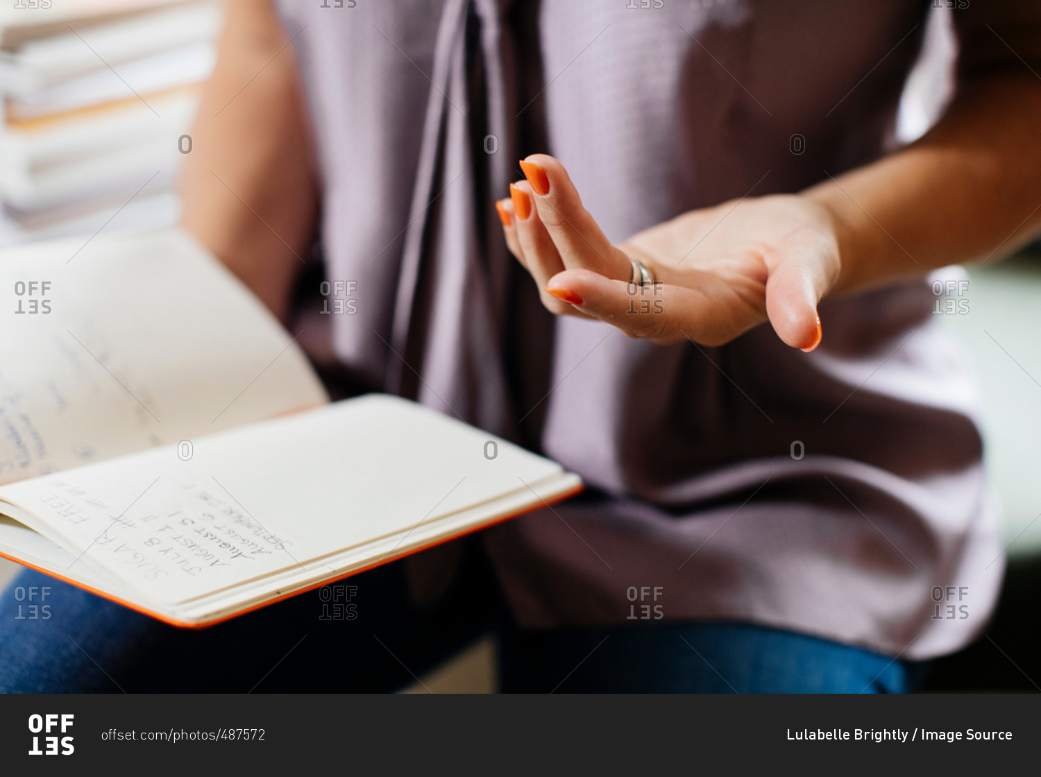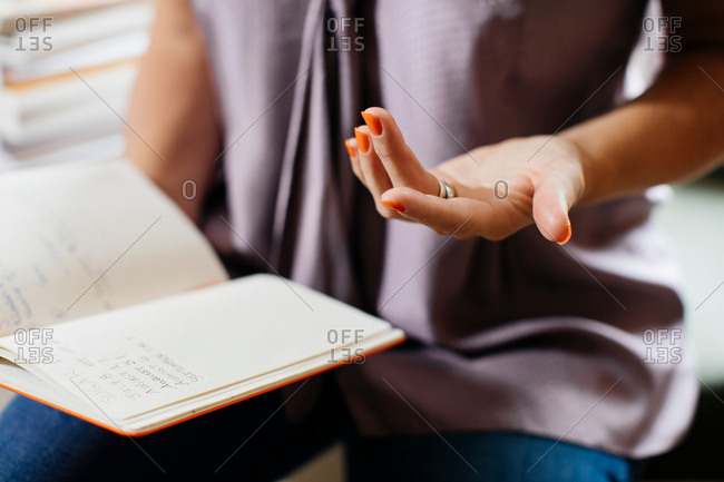 Cropped view of woman holding open notebook