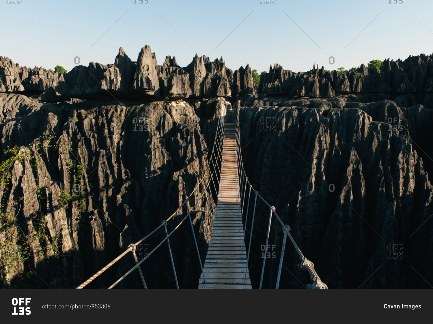 Crossing the rope suspension bridge above the Tsingy de Bemaraha