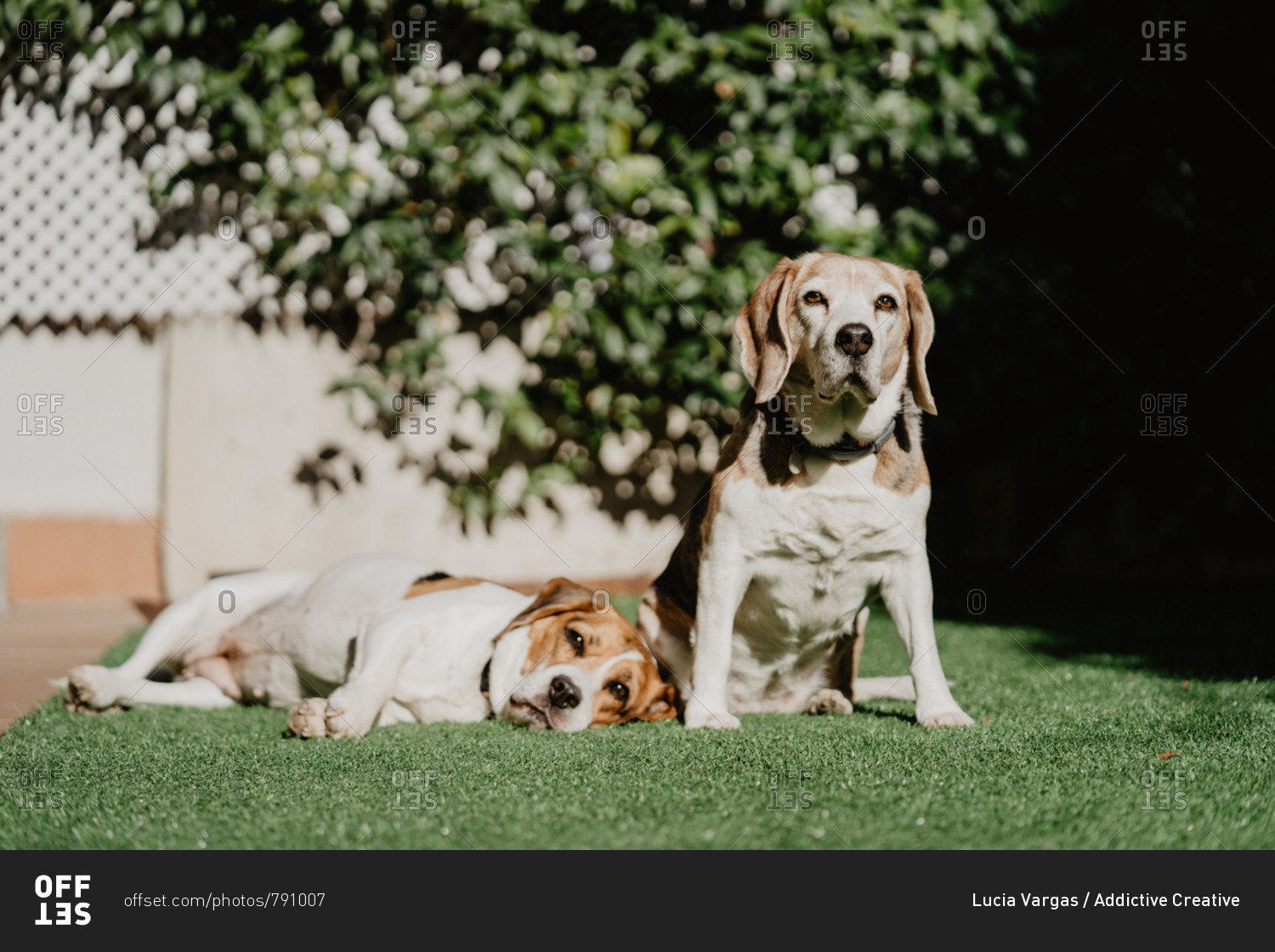 Cute beagles on lawn in yard
