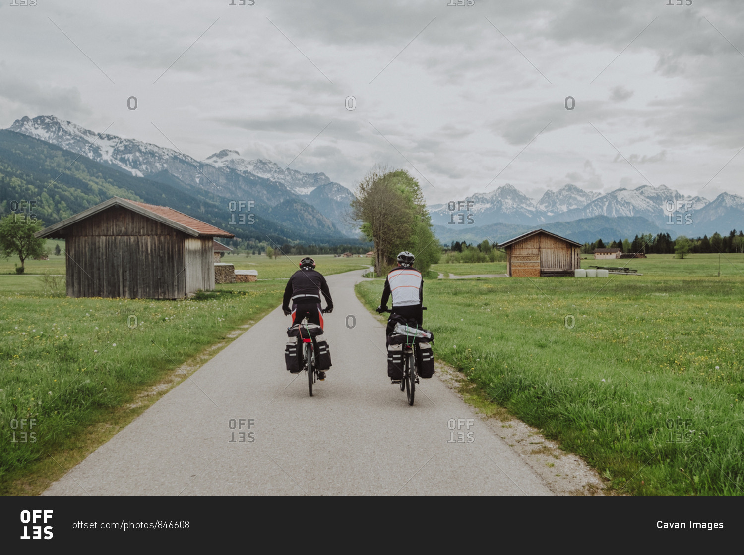 Cyclists ride his bikes in fussen, Germany