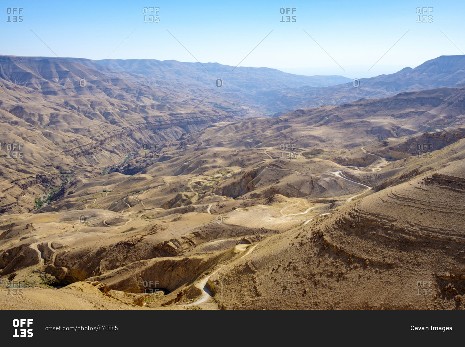 Desert landscape near mujib reservoir on the king's highway, jordan