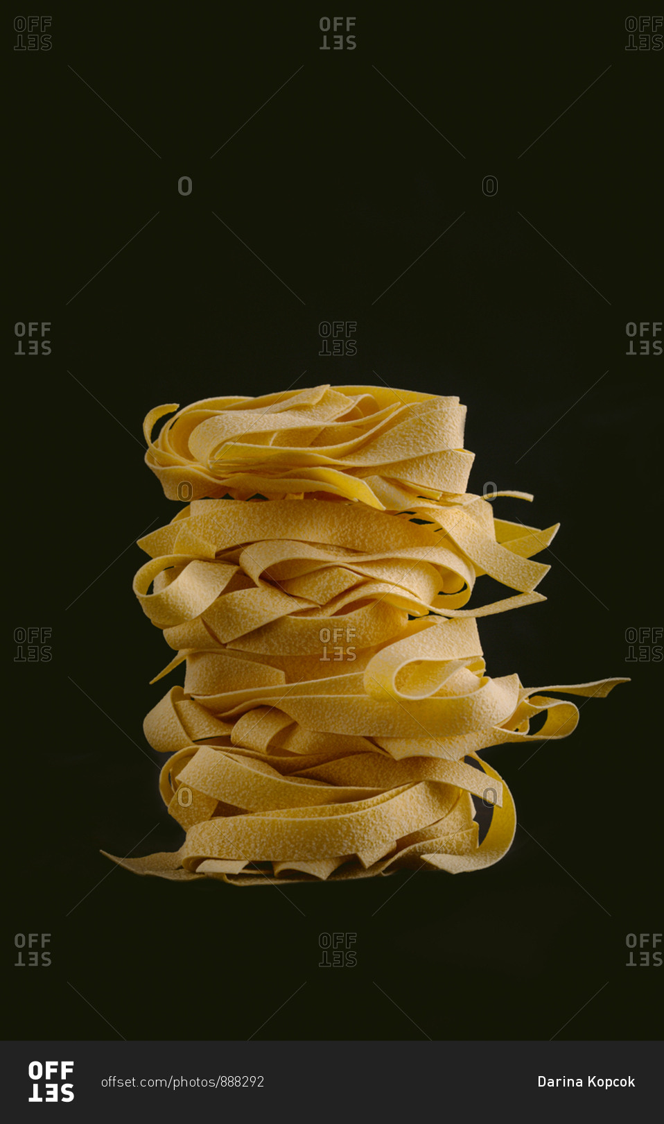 Dried pappardelle on black background