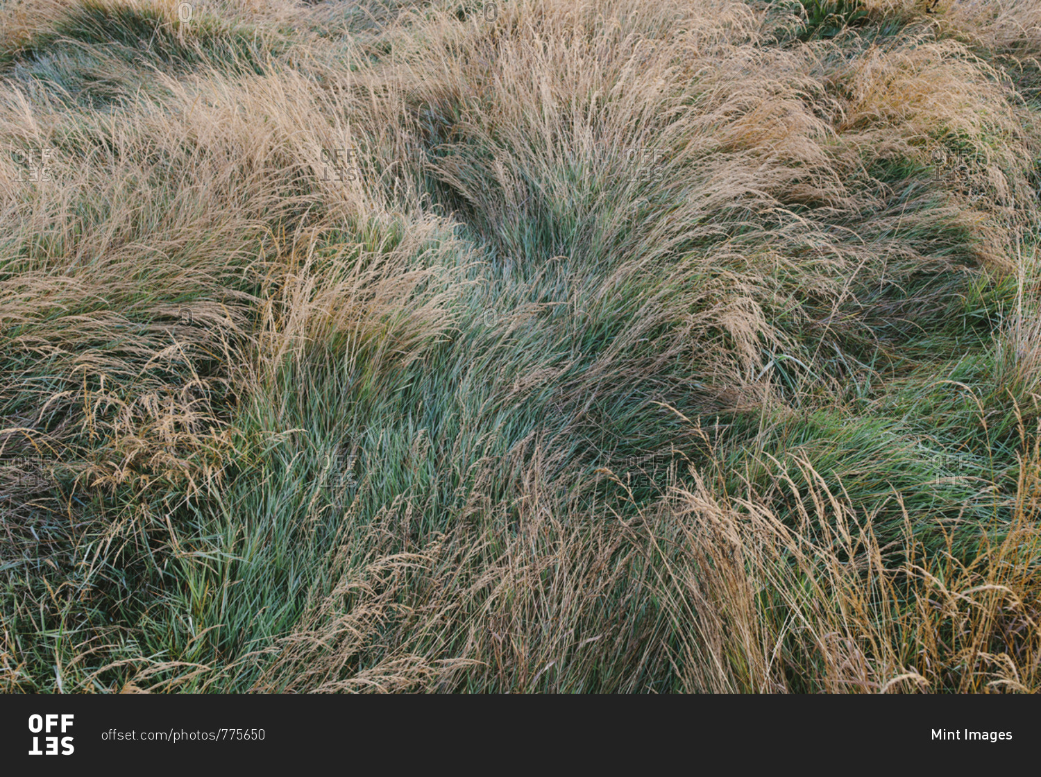 Dry meadow grasses at dawn, Tomales Bay, Point Reyes National Seashore, California, USA.