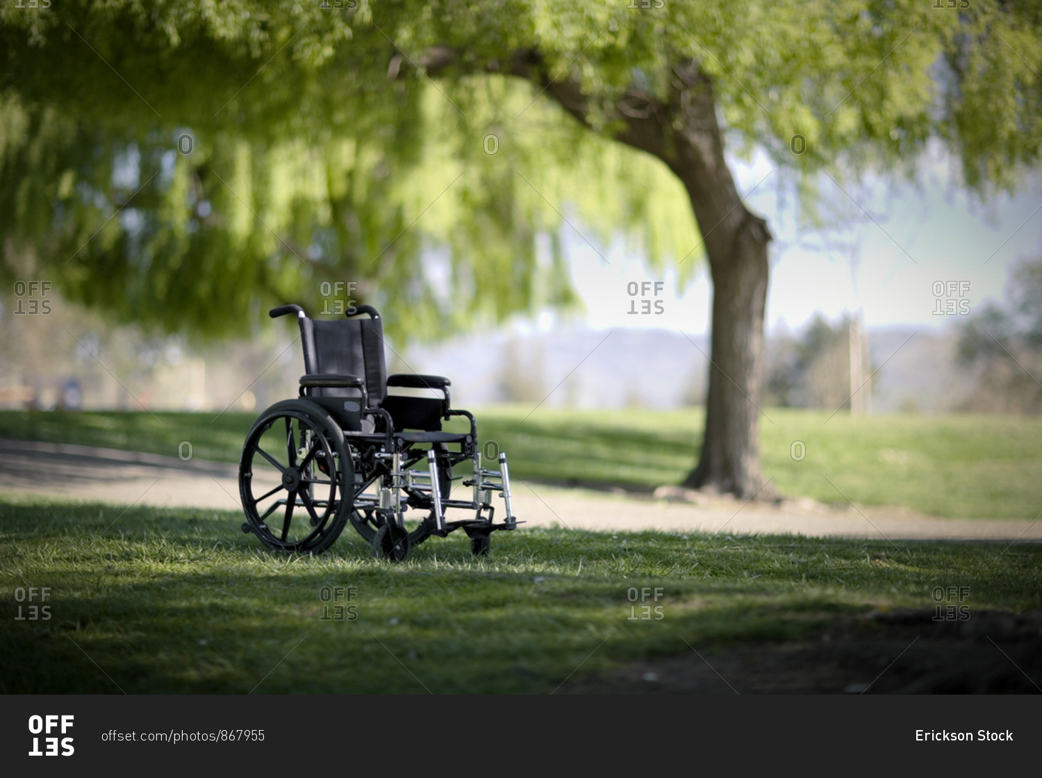 Empty wheelchair in a park.