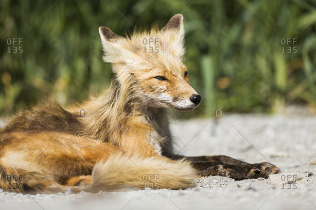 False Pass, Alaska, United States of America - July 25, 2008: A Red Fox (Vulpes Vulpes) On The Beach; False Pass, Southwest Alaska, United States Of America
