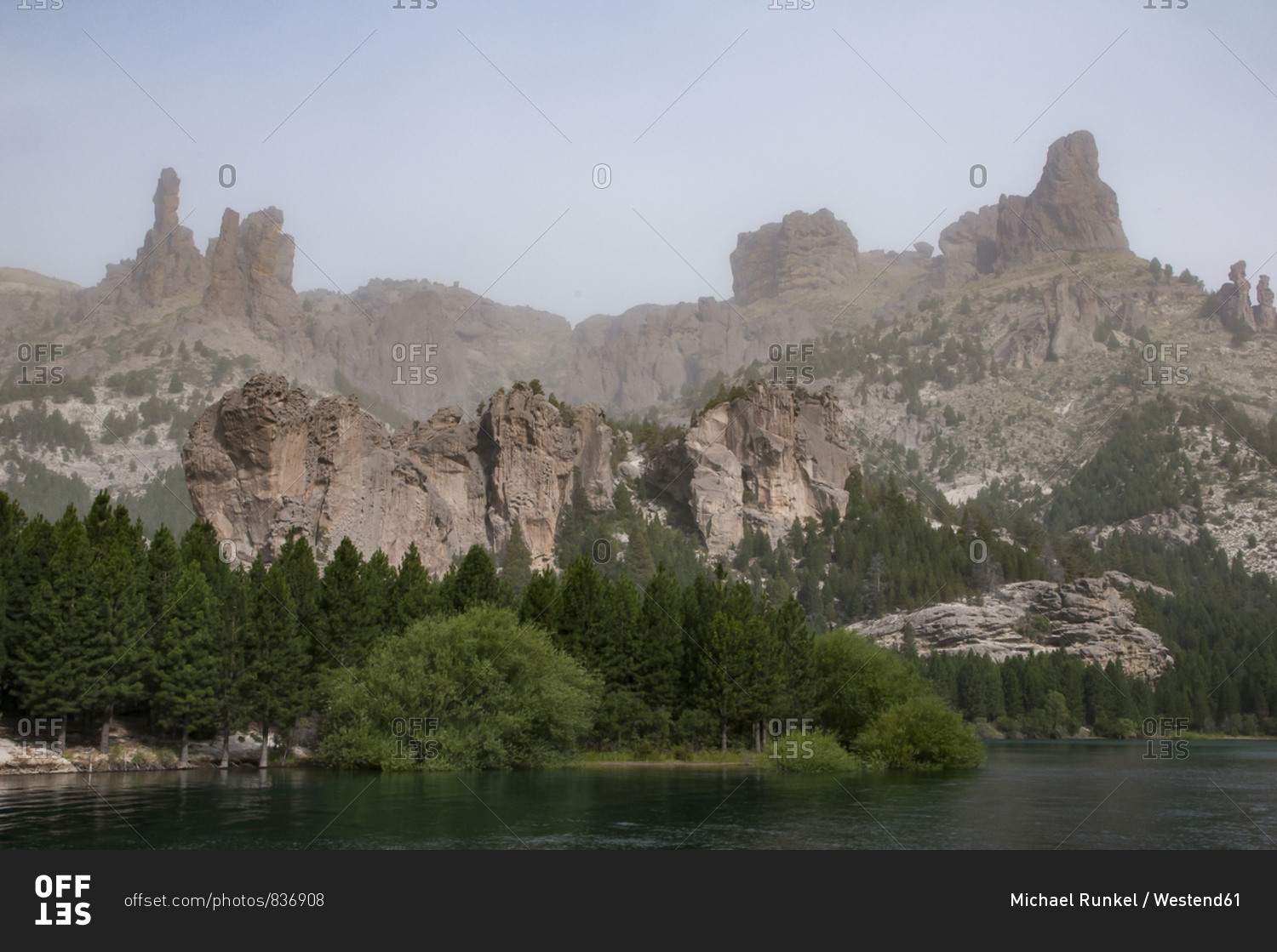 Fog above craggy hills- Road of the Seven Lakes- Argentina- South America