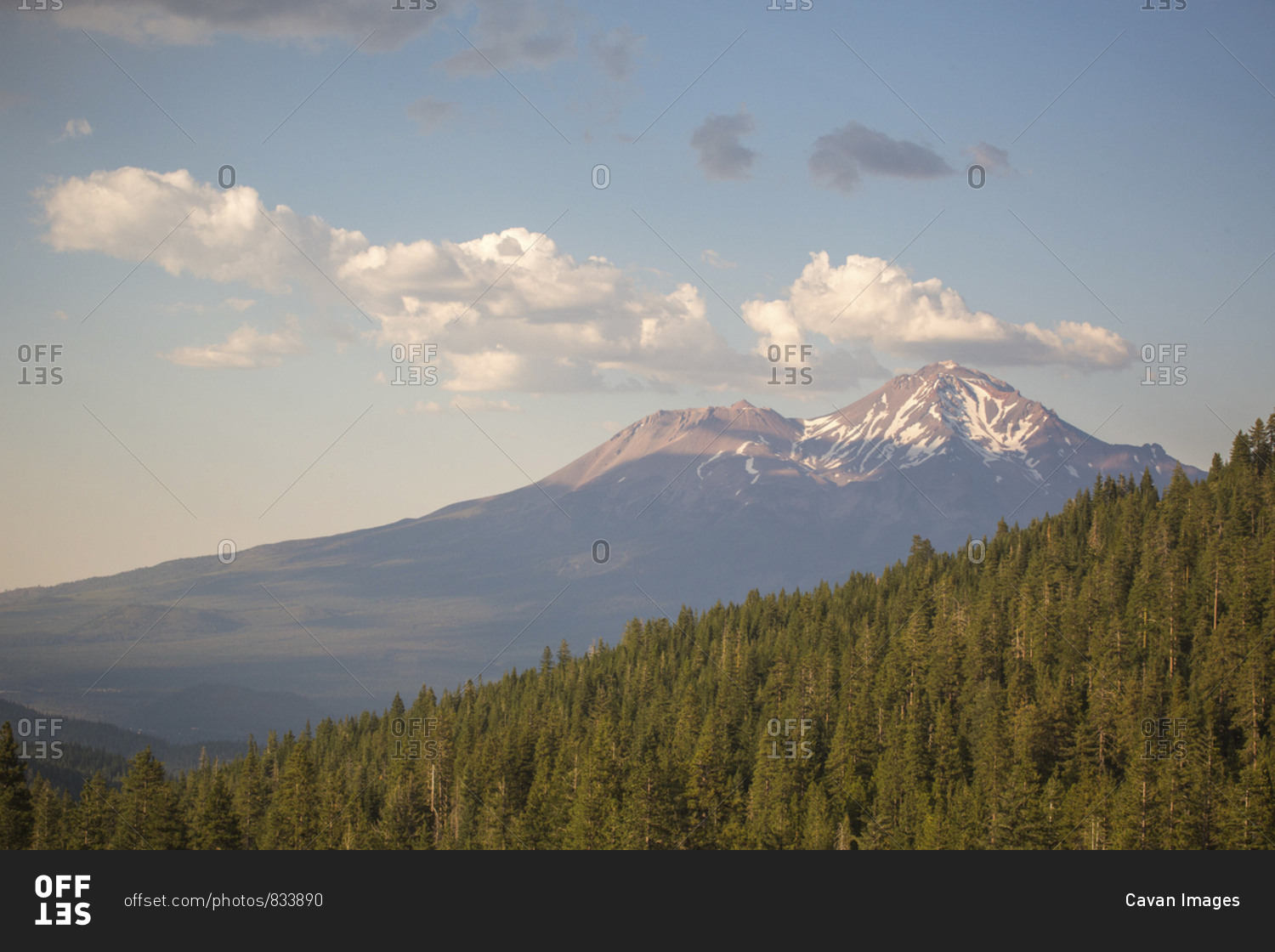 Forest and mountain peak, Shasta, California, USA
