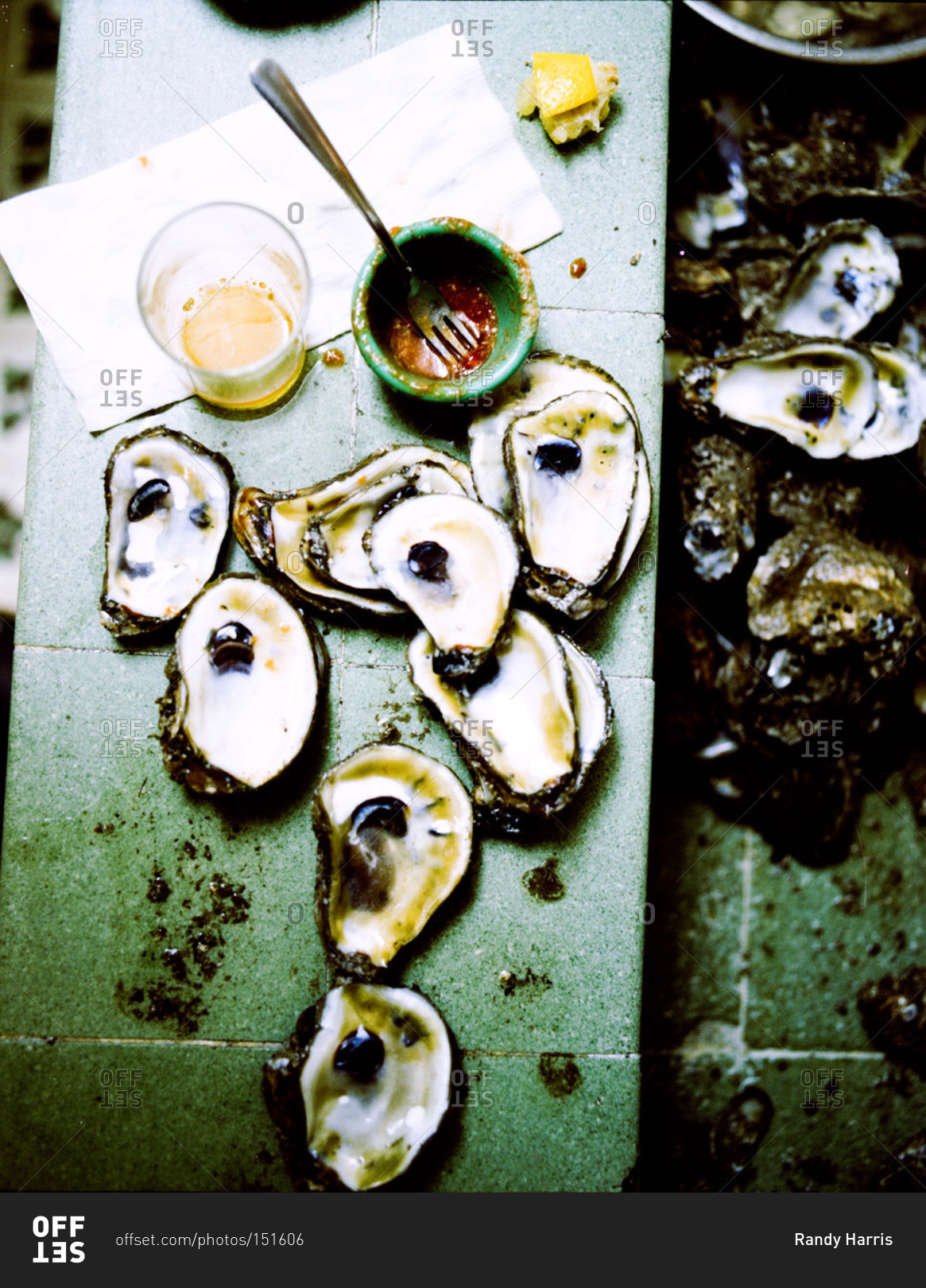 Fresh oysters prepared on table