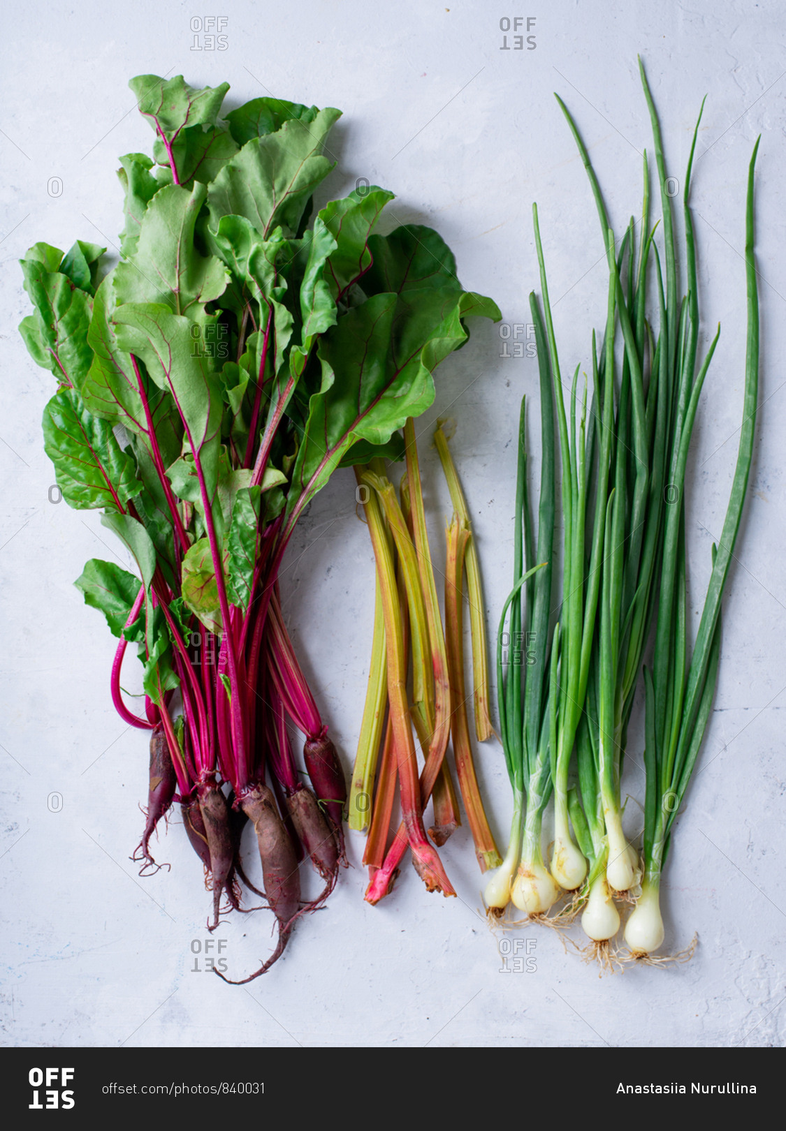 Fresh vegetables from the farm - beets, rhubarb and onions. Multicolored stems