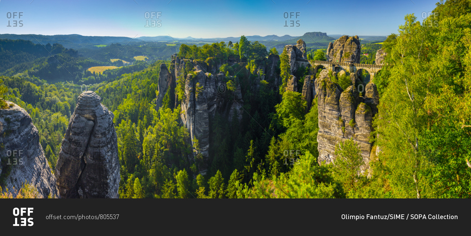 Germany, Deutschland, Saxony, Sachsen, Bastei Bridge, Elbsandstein Mountains, Saxon Switzerland National Park