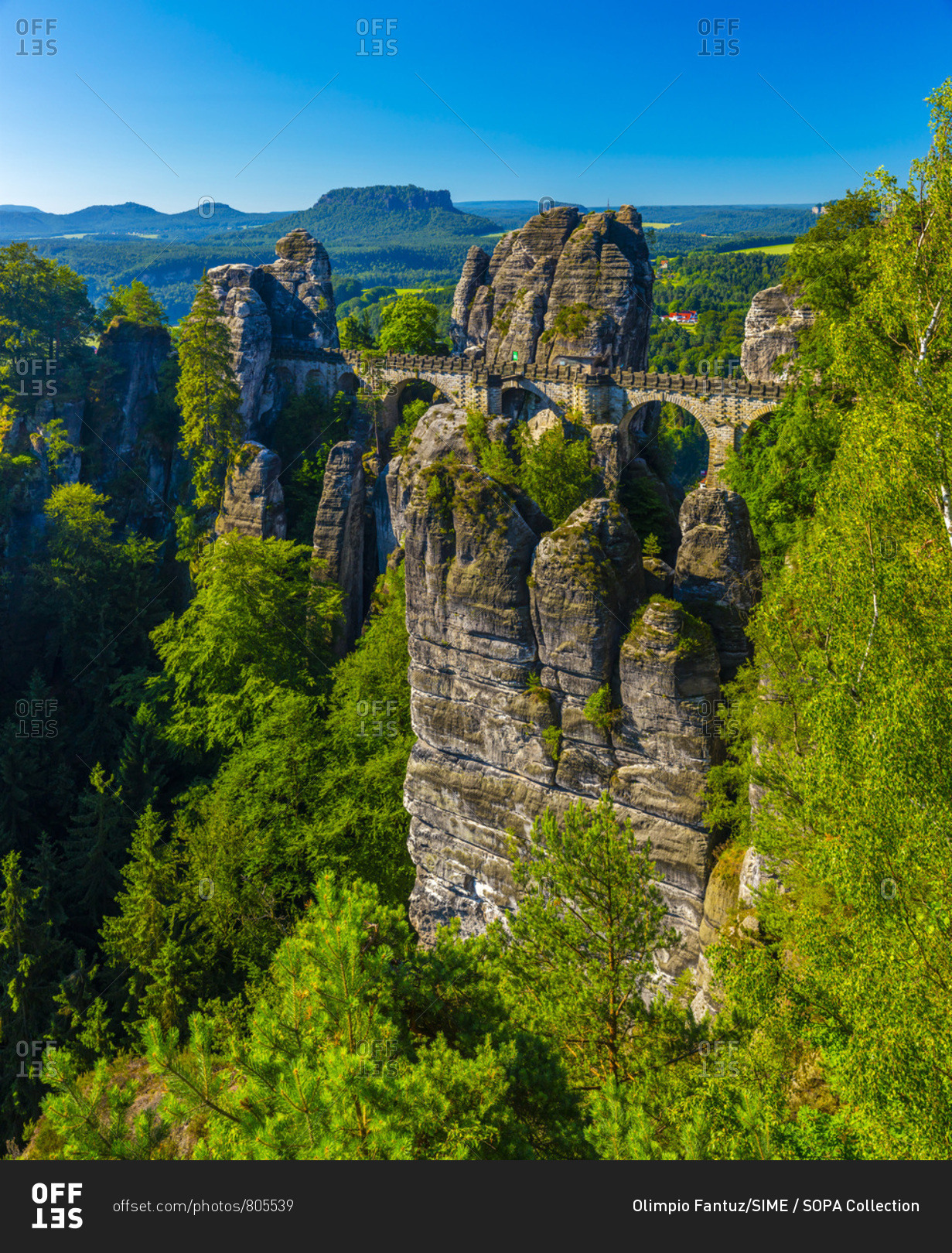 Germany, Deutschland, Saxony, Sachsen, Bastei Bridge, Elbsandstein Mountains, Saxon Switzerland National Park