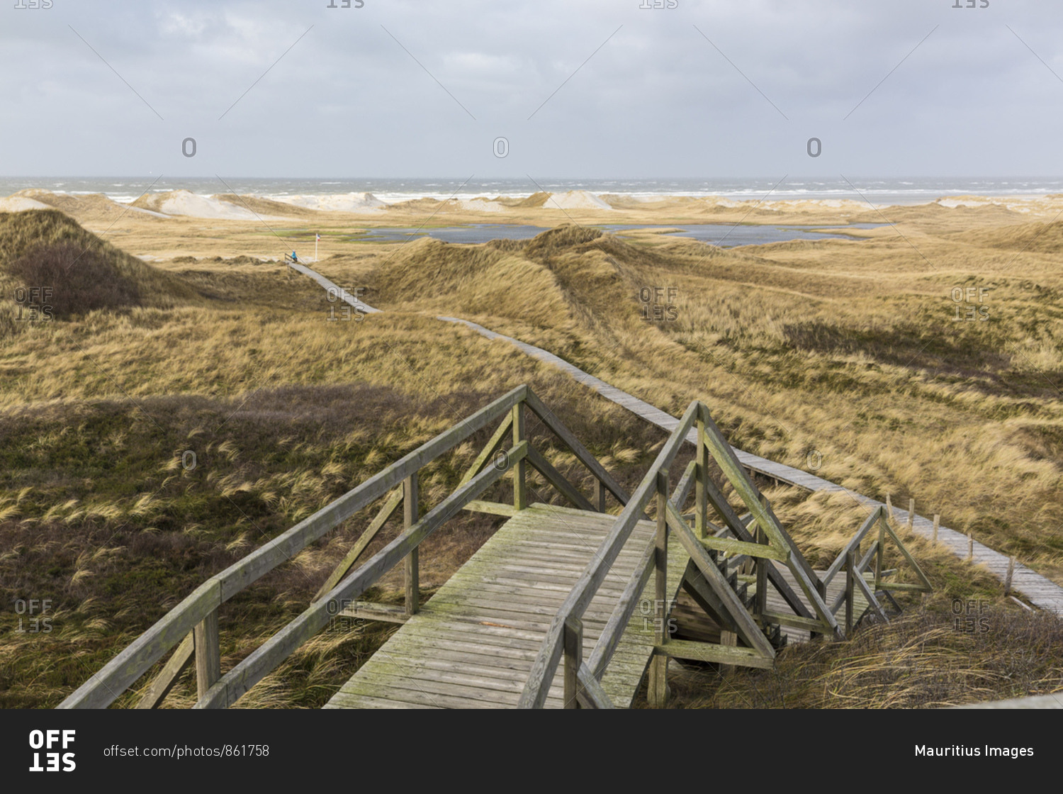 Germany, Northern Germany, Amrum, Bohlenweg through the dune landscape