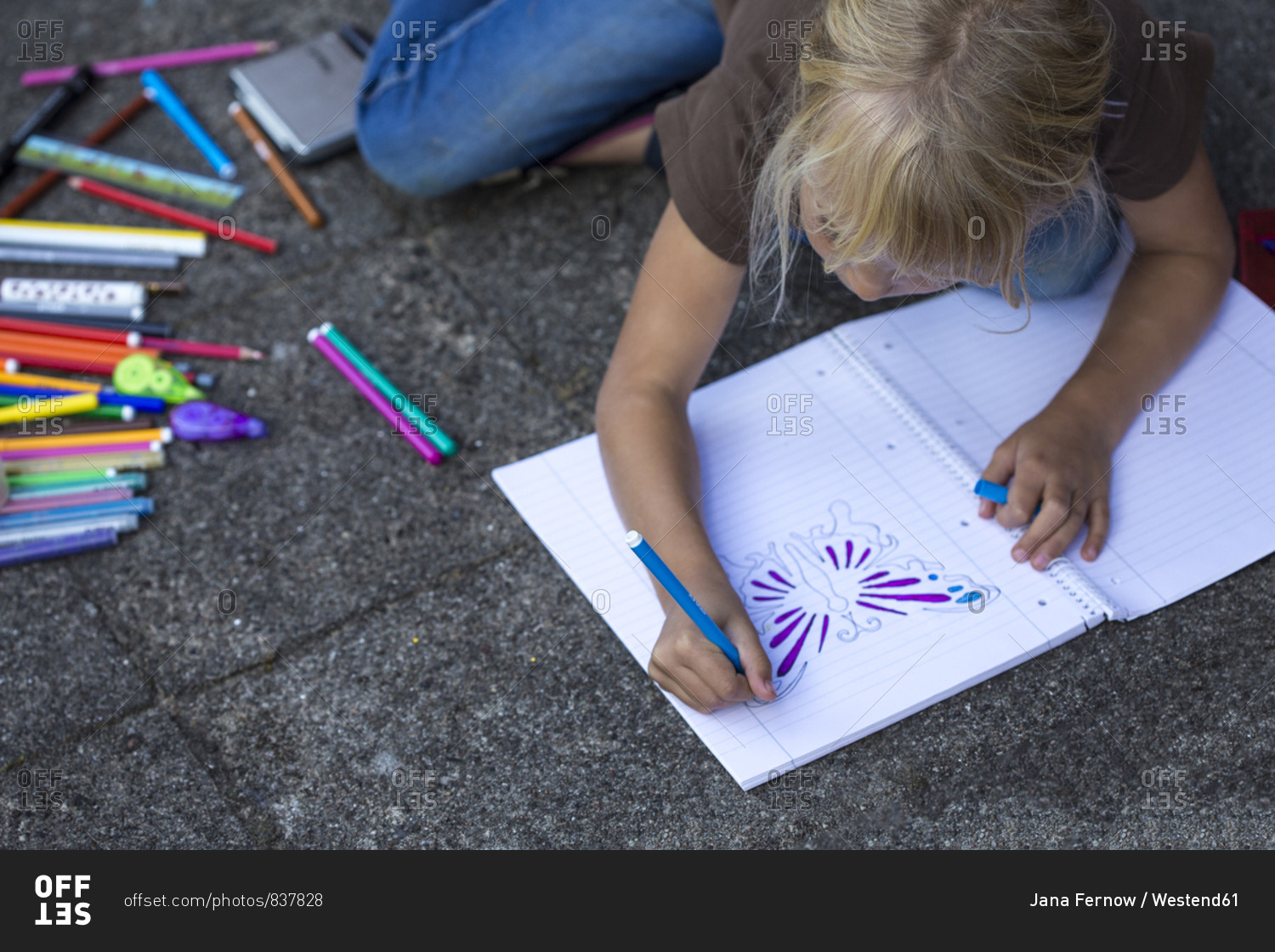 Girl crouching on pavement painting