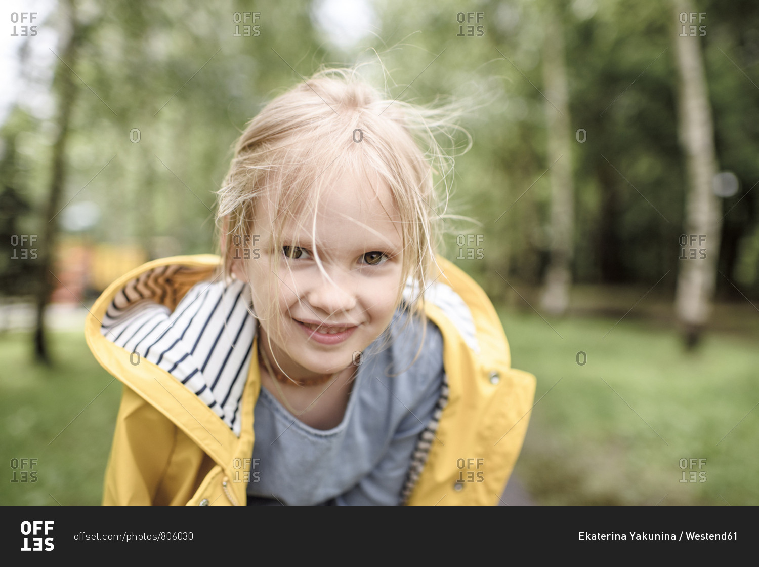 Girl wearing yellow rain jacket