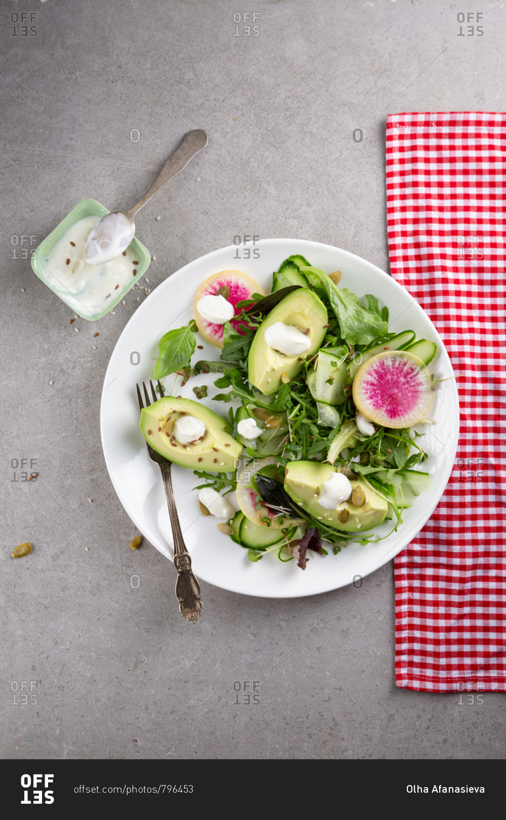 Green avocado and radish salad