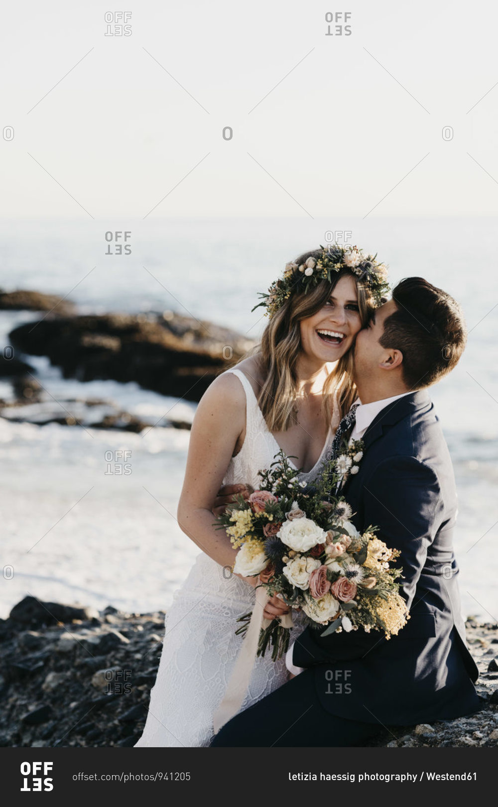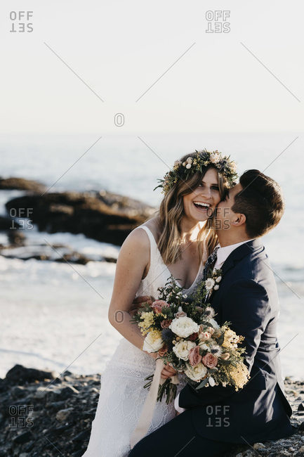Happy bridal couple at the beach